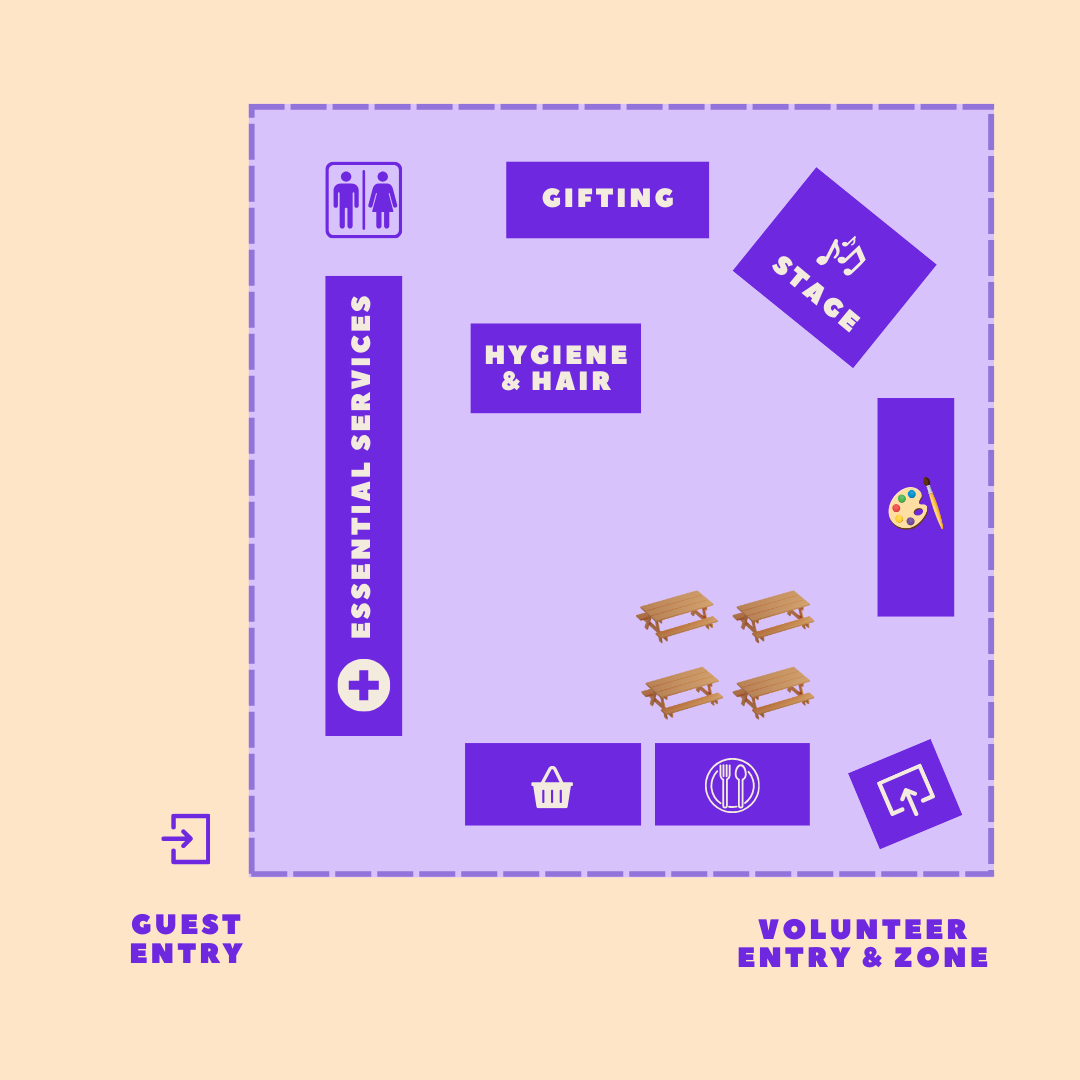 Breaks rotate every 2–3 hours (your Area Coordinator will guide you). When you’re off, head to the Eating Area for a snack + water, or chill in the Volunteer Relaxation Zone.